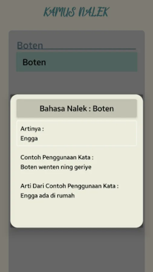The Nalek (Freebasan) language is a Javanese attack language which is widely used in the Banten region which has been in use since the time of the Banten Sultanate in the 16th century around 1526 at the beginning of the formation of the Banten Sultanate under the auspices of Sultan Maulana Hasanuddin.