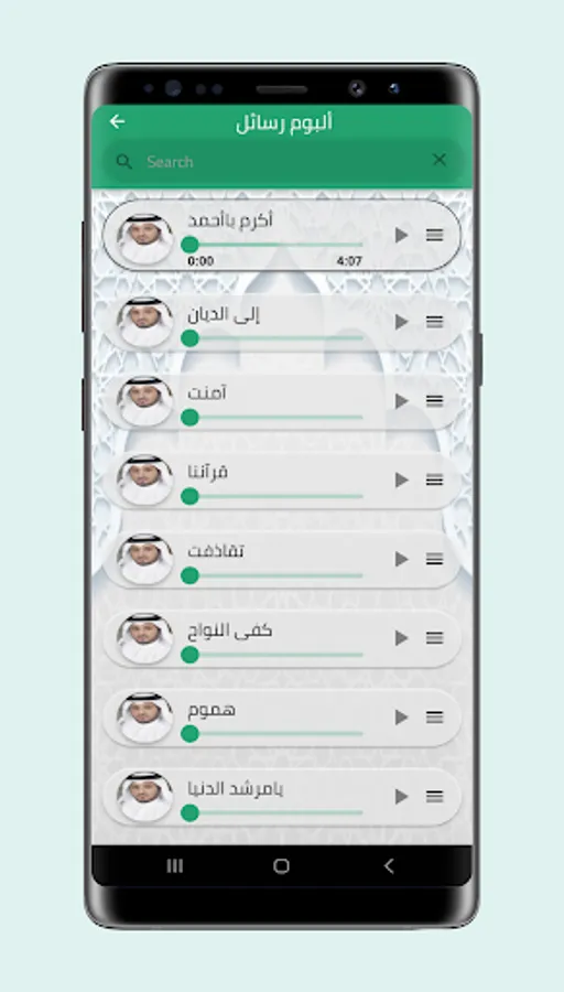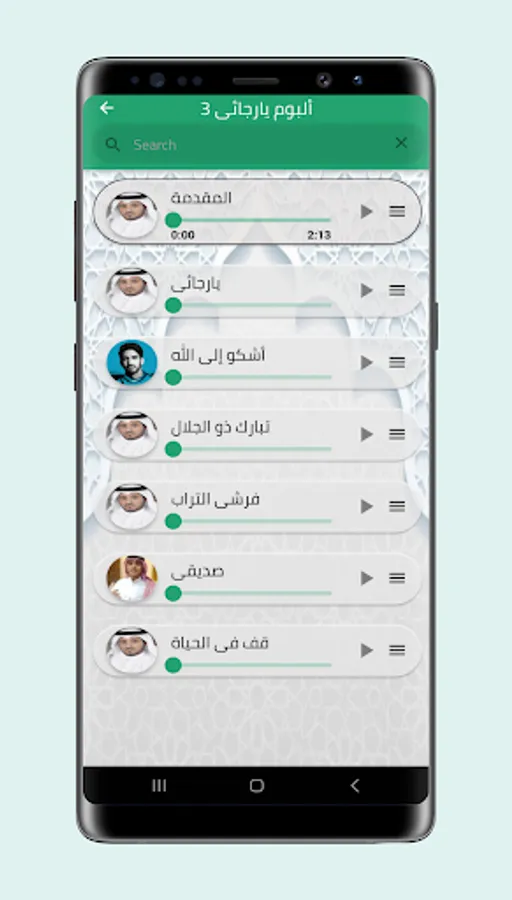 Our application also includes the songs of Mashari Al-Arada on the album Gate of Glory, Maliki, Messages, Intentions, and My Beloved Mother