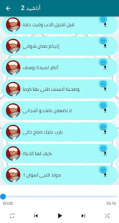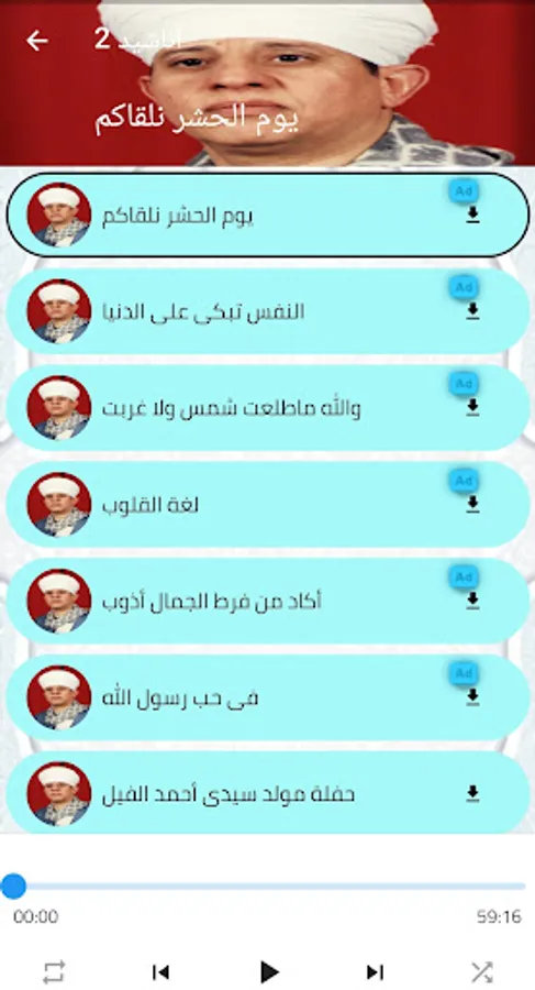 The application contains a varied list of the concerts of the Dean of religious chanting, Yassin Al-Tohamy, download it now and enjoy the most beautiful songs and poems of Sheikh Yassin Al-Tohamy, including: