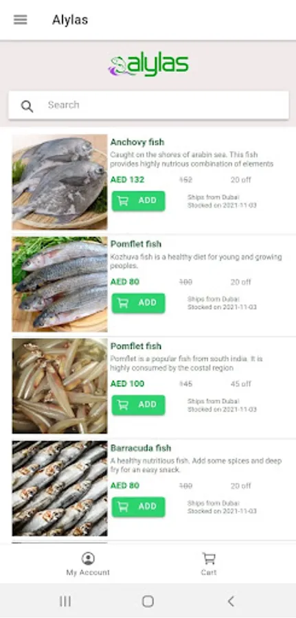 Fish and other seafood doesn't taste good if they are stored in freezers for a long time. That is why, on Alylas, you will be able to see the stocking date of sea food and order from appropriate sellers.