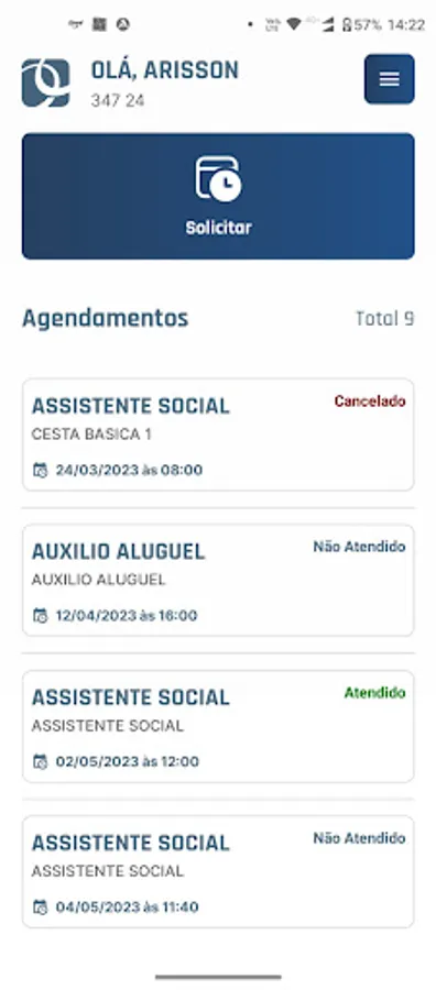 Application for scheduling services offered to the community of Candeias by the Municipality of Candeias through the Department of Development and Social Assistance.