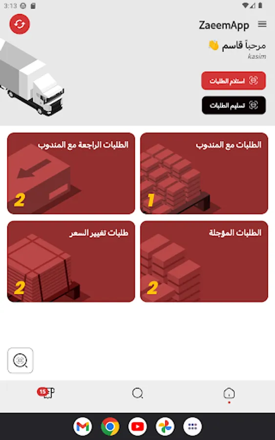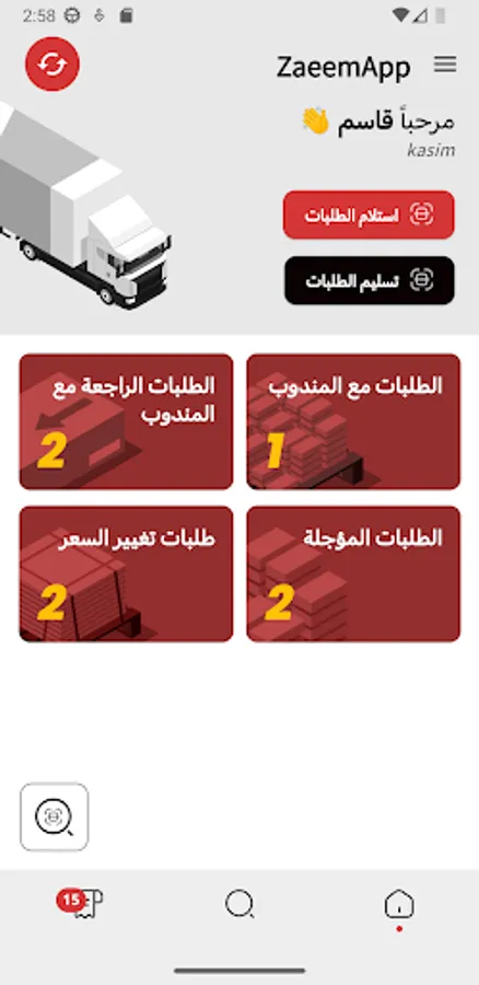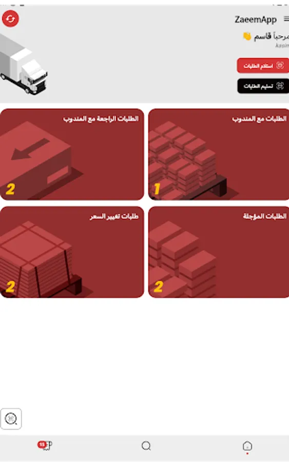 Al-Zaeem express delivery company application dedicated to the delivery representative, through which the delivery representative can receive, follow-up and deliver all orders in addition to direct communication with merchants and the company's follow-up team.