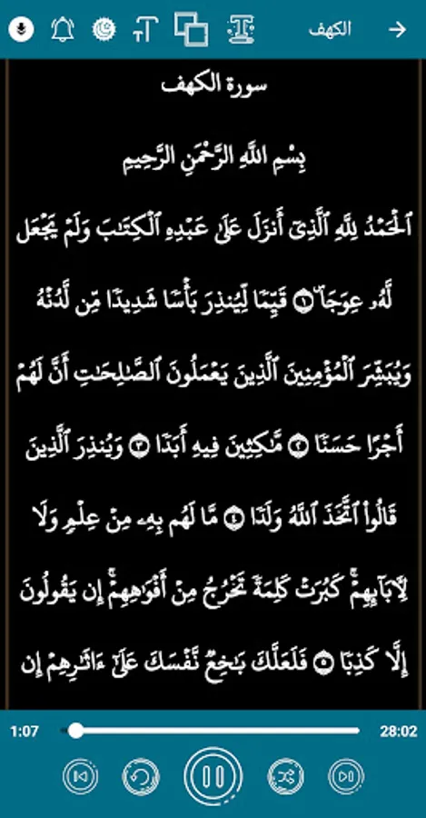 By pressing the (Next Surah) and (Previous Surah) button, you can listen to the previous surahs of the surah you are listening to, as well as the following surahs. The program also shows you the duration of each surah so that you are aware of this.