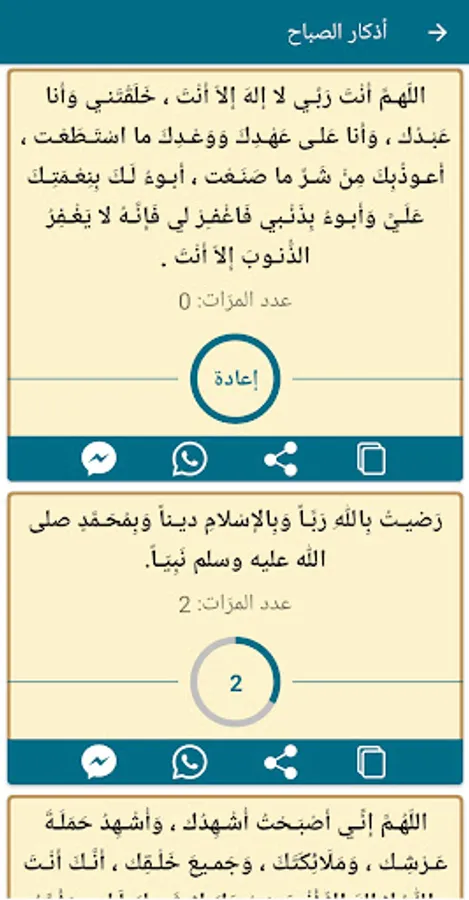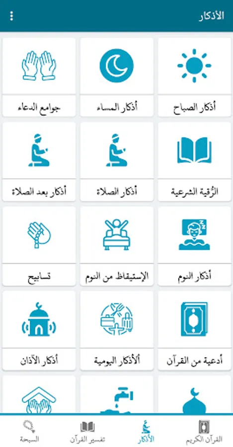 The application contains the daily supplications for a Muslim, including: