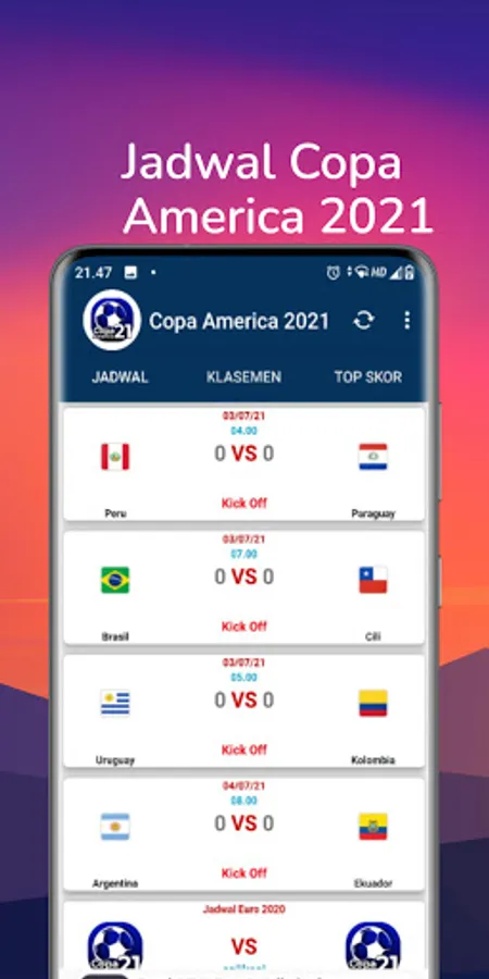 Get the latest information about Copa America 2021 football in this application. Here we provide information such as:
