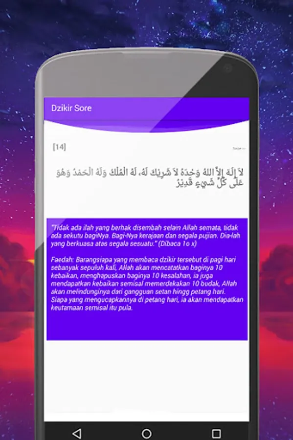 In this application is included with the benefits of each dhikr based on the hadith that mentions the dhikr so that it can reflect on the purpose of dhikr and achieve its benefits.