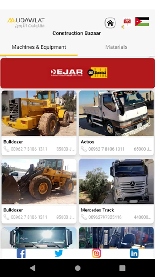 MUQAWLAT Jordan is an online App specialized in listing Construction Material and Construction Machines and Equipment in Qatar. MUQAWLAT is your Gateway to the world of Construction.