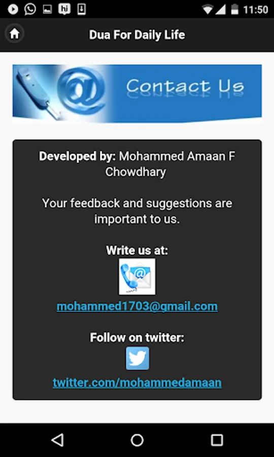 In future we will be coming up with more Dua's for other situation and problems faced by human and are also trying our best to get the Dua's in Arabic font. Till then keep sharing the application and let others know about it and do leave us a feedback for the best update in future.