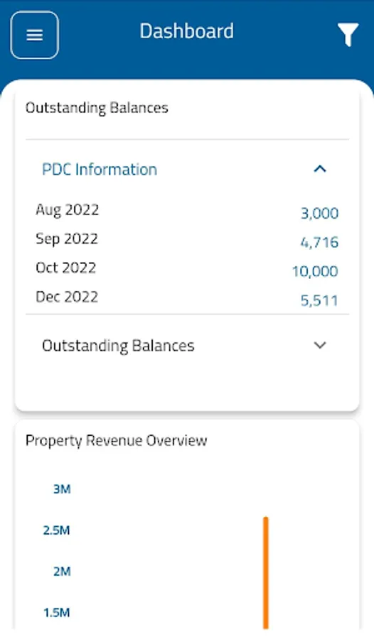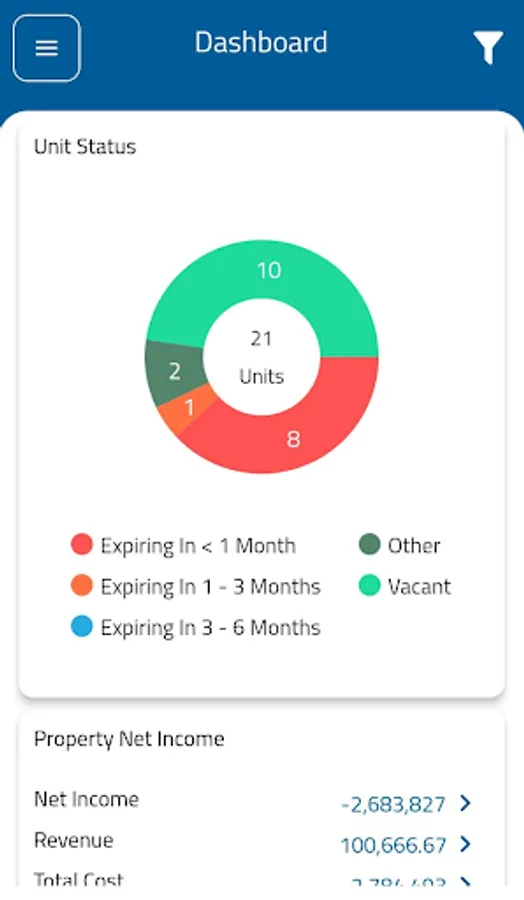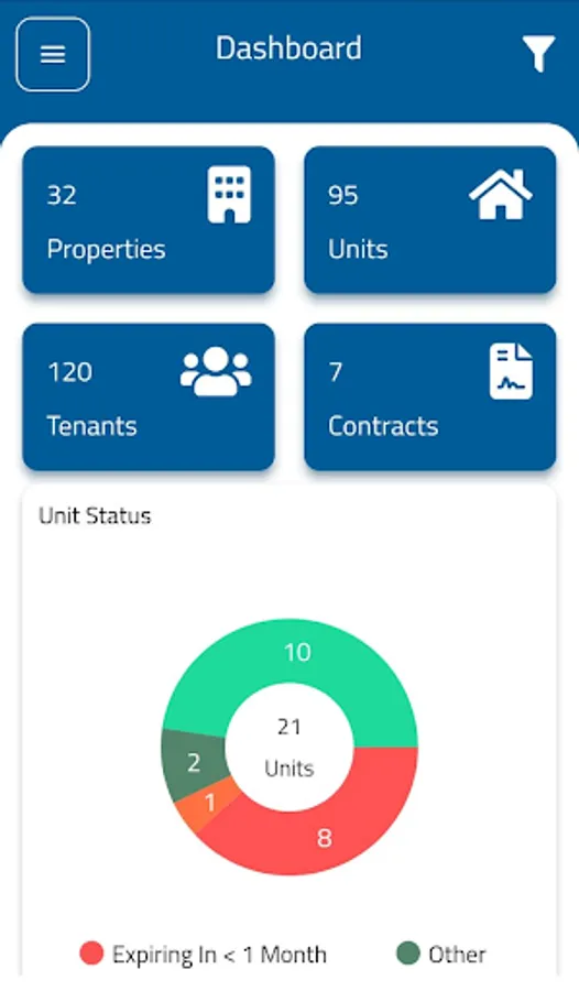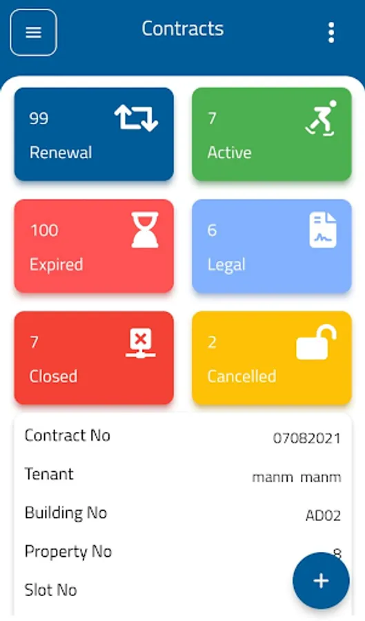 - Tenancy contract status with count of renewal, active, expired, legal case, expired, cancelled