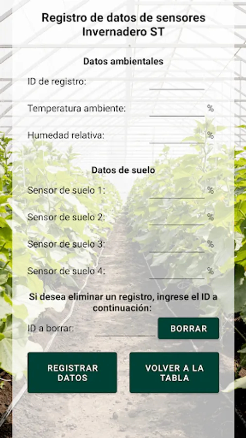 App developed to manage the data records obtained from the sensors of the Santo Tomás Rancagua greenhouse.