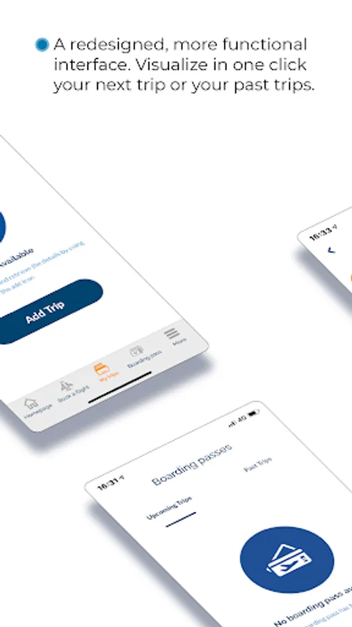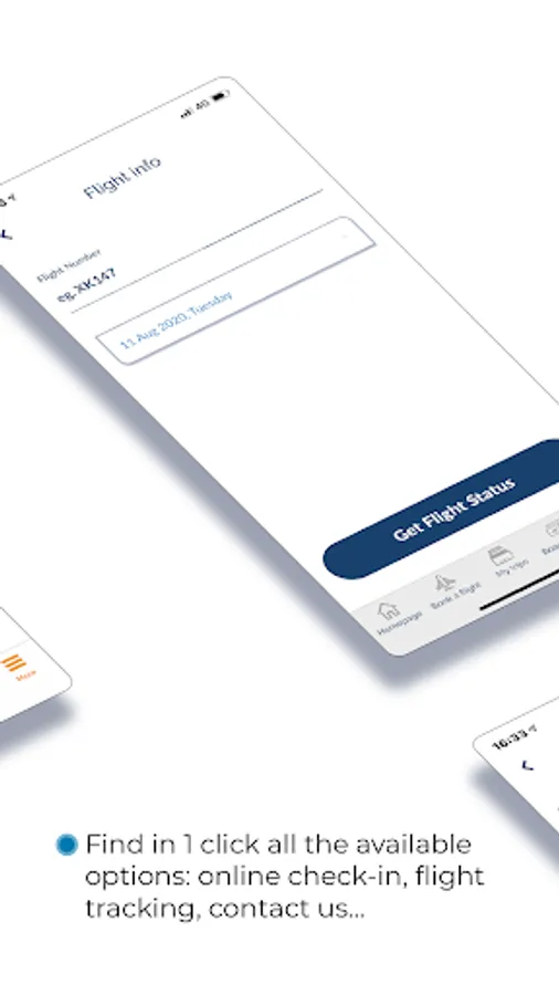 Access all information from the Home screen. Buy an airline ticket, register, get your boarding pass, consult a flight schedule, manage your account ...