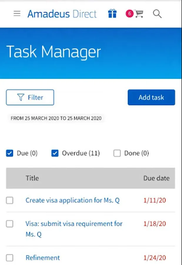 Amadeus Direct mobile gives you access to the exclusive workspace for small and medium (SME) travel agencies, on any device. From this platform, you can run most aspects of your business – from monitoring booking performance, through organizing your daily tasks to purchasing Amadeus tools to help boost productivity. You can even earn gifts to reward your activities!