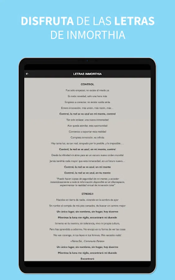 App of the show "Inmorthia, the world of tomorrow". Use the app to participate live in the draw for the painting, follow the letters live and check the available information. With this App you will increase your experience in the most futuristic show in Mallorca. Digitize and share your experience.