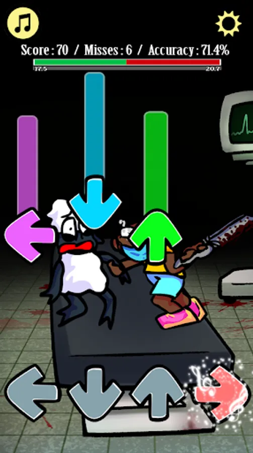 It's also important to pay attention to your opponent's attacks and try to defend against them by pressing the correct arrow keys. Finally, try to stay relaxed and focus on the music to help you get into a rhythm and perform at your best.