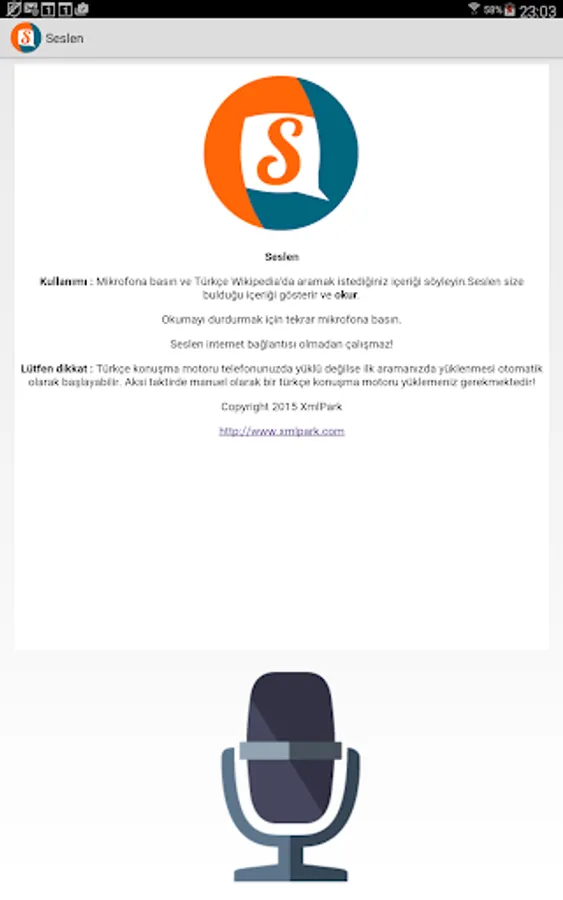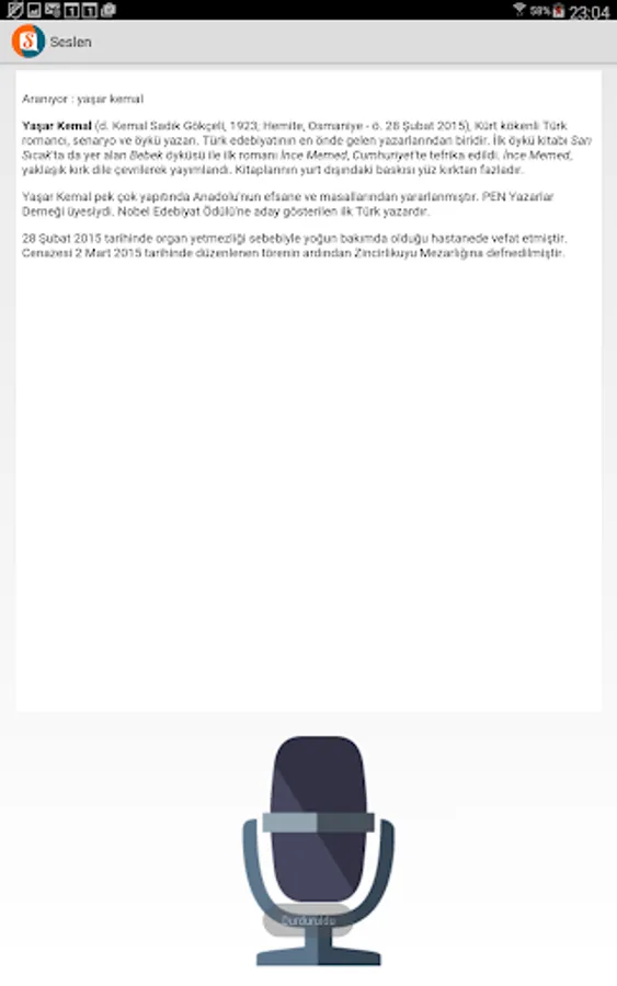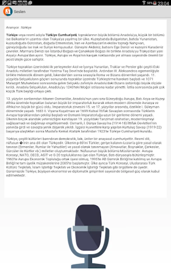 Search Turkish version of Wikipedia without the need for typing and only using your voice.