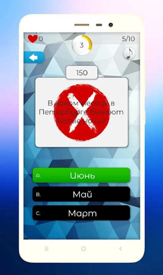 Ten questions and three answers for each: choose the correct answers, earn points and win the quiz game.
