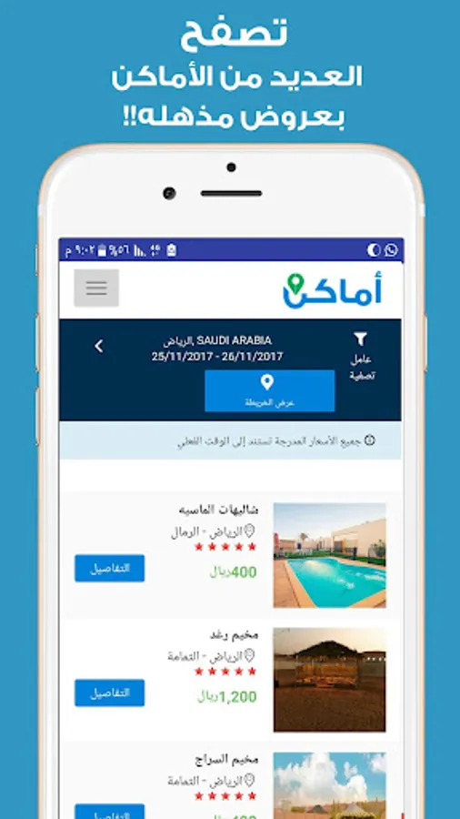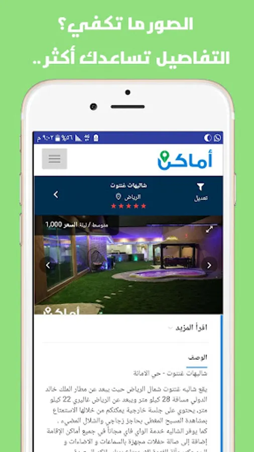 Now chalets and rest houses and camps have become the Kingdom between your hands in the application of places. Book your chalet and you are at home in the simplest steps with the Best Price Guarantee. All chalets are documented and guaranteed high standards of luxury and cleanliness. Application places allows you to search and compare more than 300 chalets and a break camp in the Kingdom. Characterized by the application of places of accuracy and clarity of chalets details photos to view more effectively. The chalets were classified in the application of places to suit families or young people's requirements.