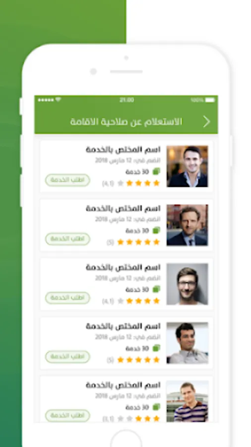 Where the application provides you with a list of all the services that belong to any of the sections mentioned above and when choosing any service related to any section of them is a list of all the experts available in the application who serve this service and provide all the data about each expert until the selection of the best expert among them .