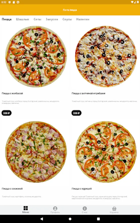 Food delivery will come quickly! Always fresh and tasty pizza, juicy kebab and shawarma! We try to work clearly and carefully, we fulfill the wishes of our clients! Bon Appetit!