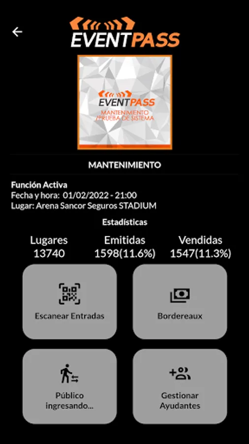 It has the important functionality of scanning tickets at the entrance to the event, counting at all times with the information of tickets sold, available, as well as those entered and missing. Messaging with short ticket and ushers that allows greater communication at all times and optimize times.