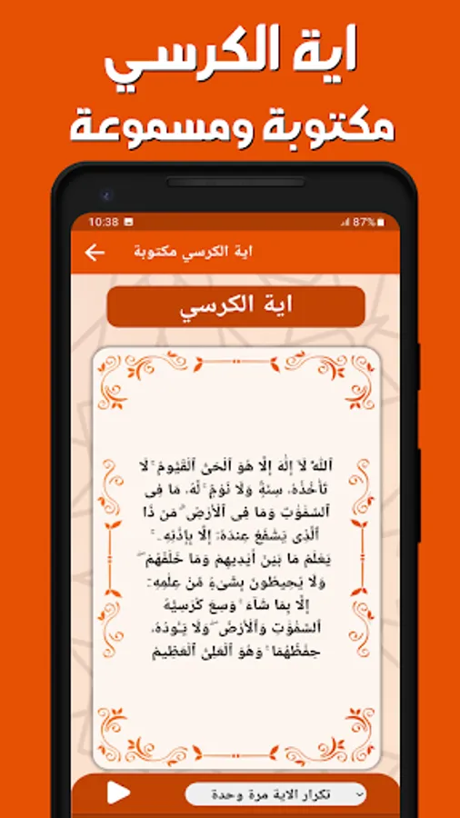 Ayat al-Kursi or Ayat al-Kursi written is an application that enables you to download and read this distinctive verse in Surat Al-Baqara with a voice and with different readings for a group of readers of the Arab world.