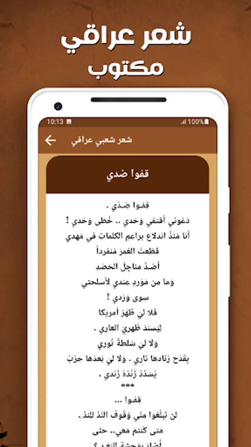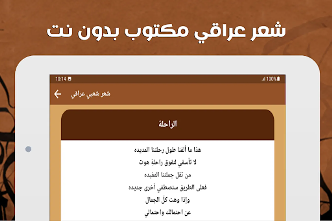 Sad Iraqi popular poetry short spinning is an application characterized by containing a large collection of Iraqi poems and poems about love, including sad poetry also written by Iraqi Arab poets and some celebrities such as Qabbani, Al-Mutanabi and Khalil Gibran.