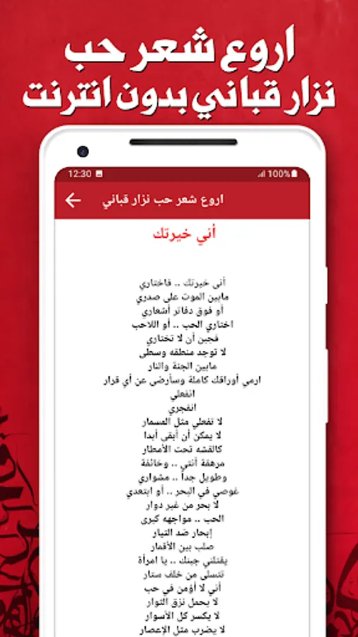 This application will present to you the most beautiful book of love poetry and the most beautiful poems of verses and sad poetry in love, and it enables you, of course, to write the sweetest message to your sweetheart. The program also contains love letters, which are messages that bring lovers closer together and increase the degrees of true love scale.