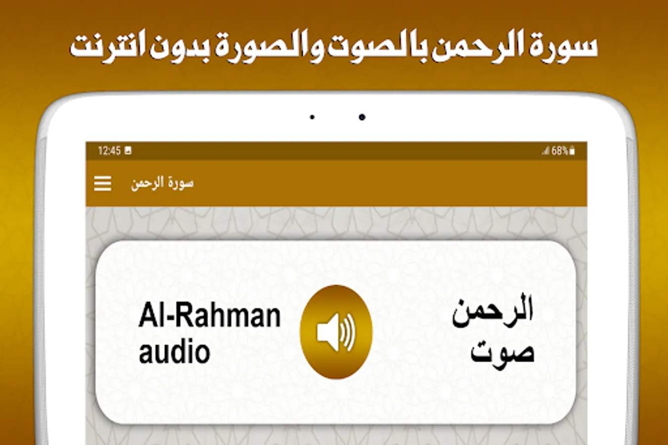 The application of Surat Al-Rahman is a voice without the net or “Sourat Arrahman” enables you to read and listen to this surah in the voice of a group of distinguished readers, with the hope that we have succeeded in this program, and if you have any question or inquiry, please send it via the comments below or via our email With many thanks to all.