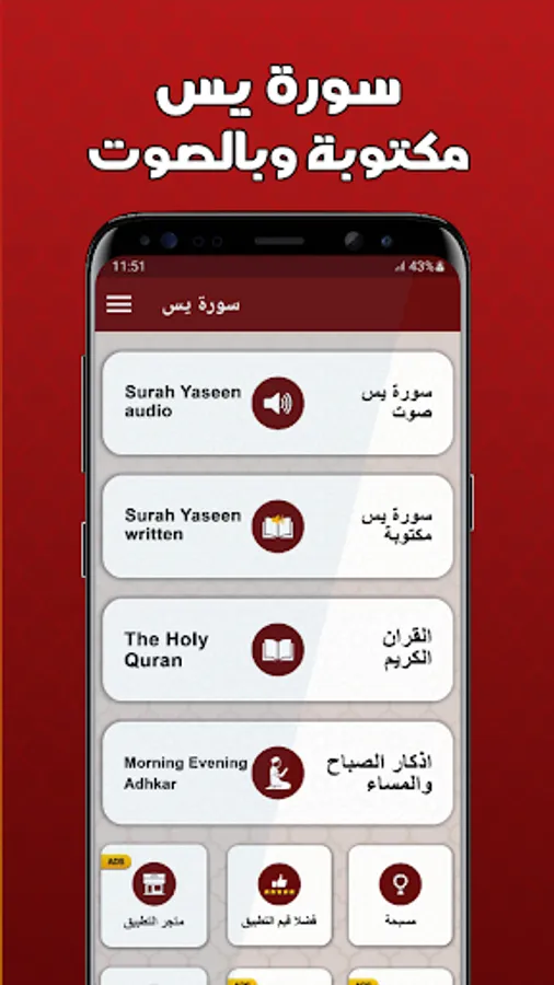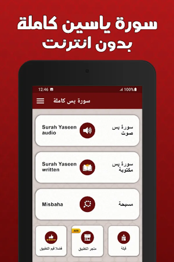 Our Surah Yaseen application is characterized by the following characteristics: