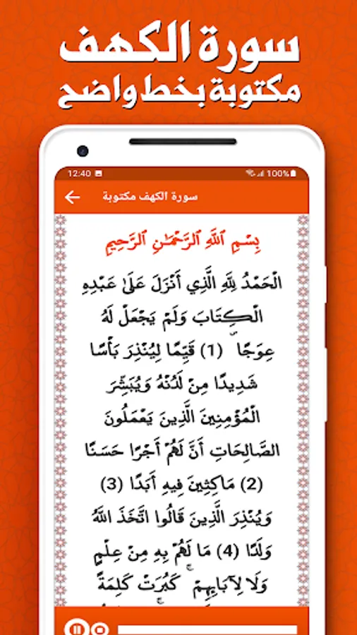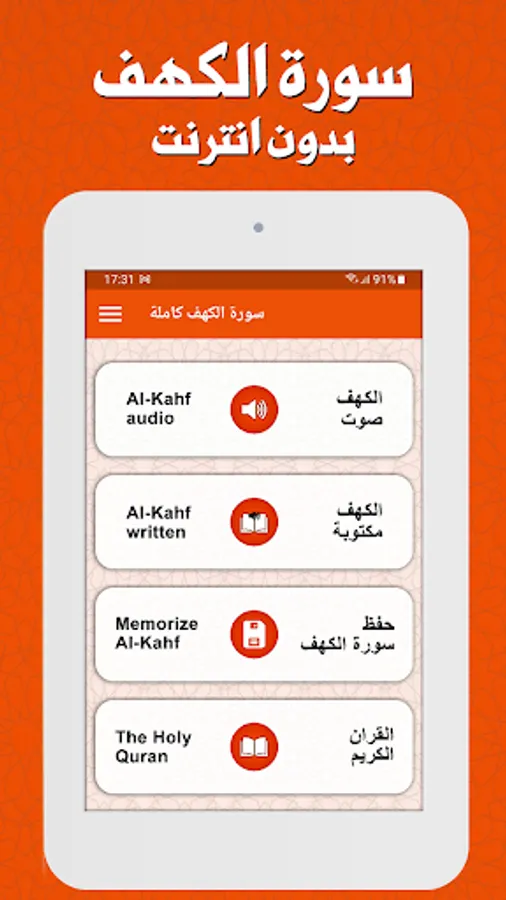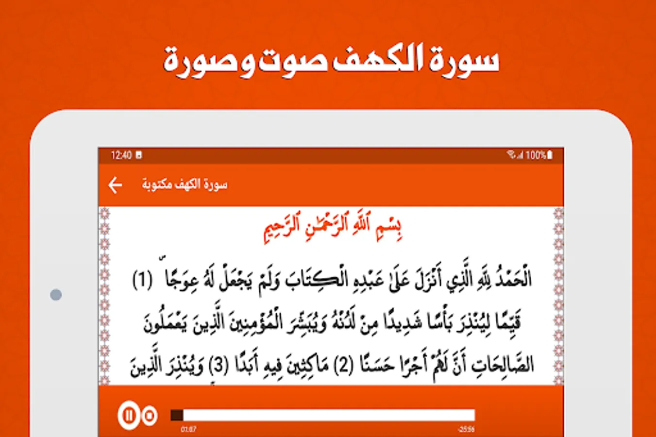 Through our application, you can listen to the image of the cave written in its entirety, as well as memorize Surah Kahf in audio without the net.