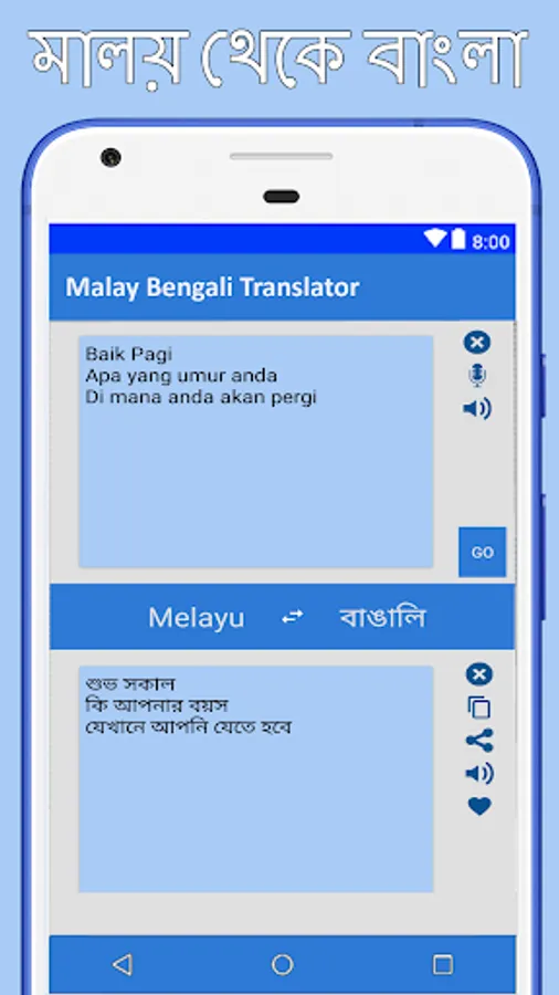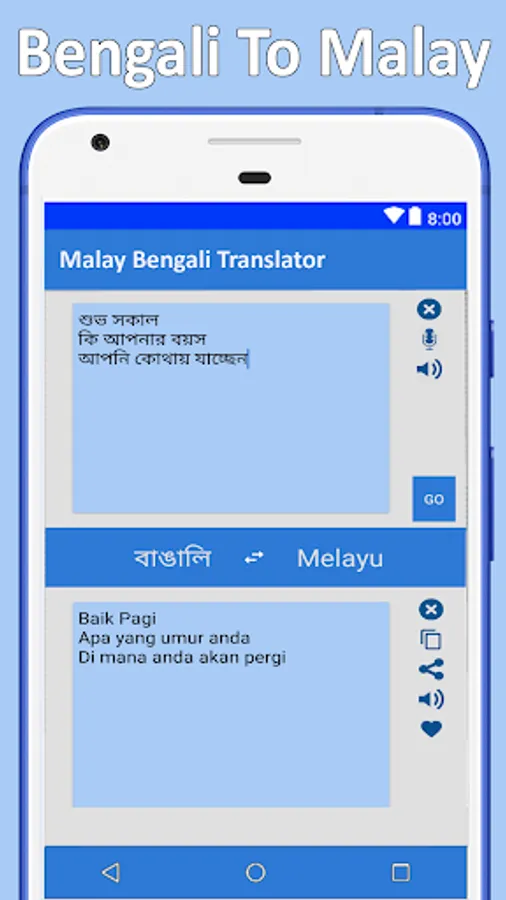 Malay to Bangladesh Translator is so great for language conversion and translation. Bengali to Malay Language Dictionary is the most advanced technology used in the Translator app that works properly. The Malay Bengali Translator app will help you translate words and text as well as voice. Bengali Malay Dictionary is the best Android application for fast translations, which can be used as a dictionary.