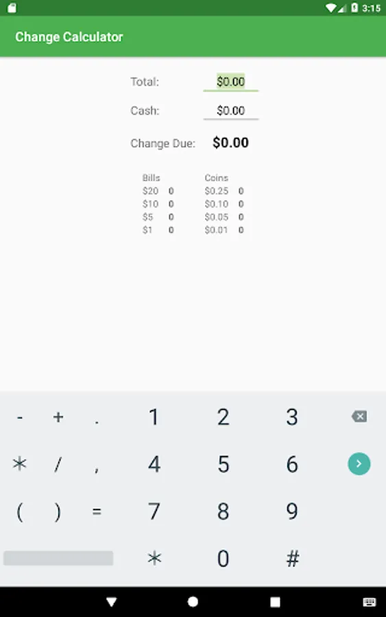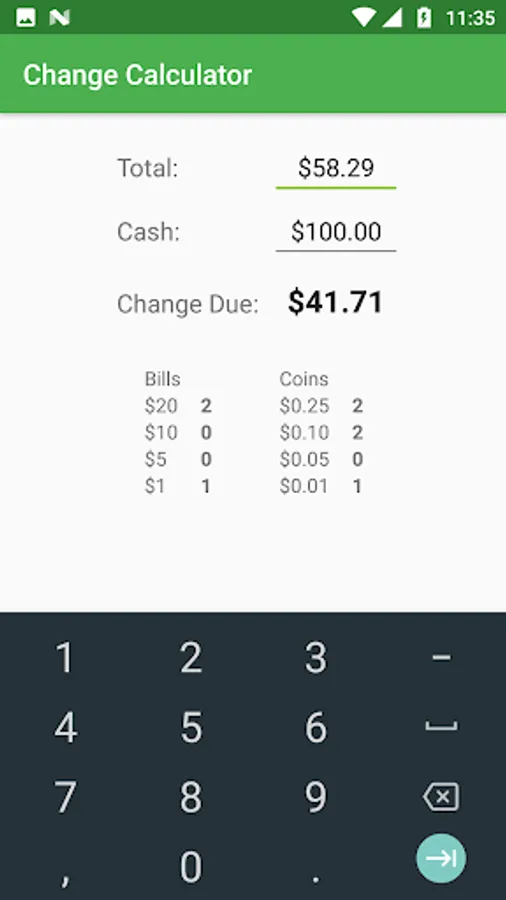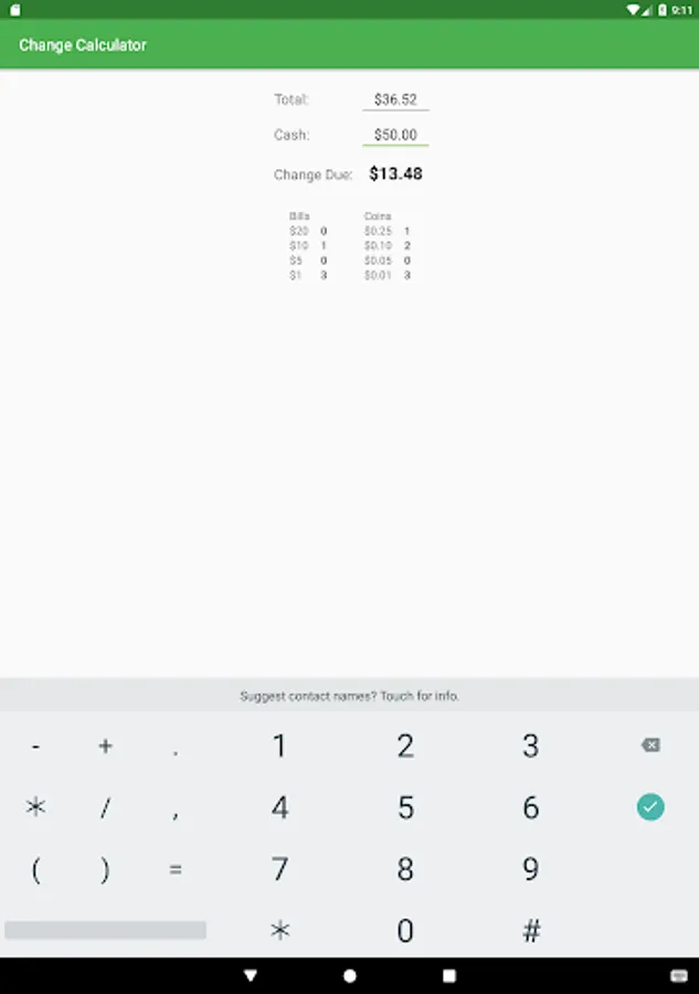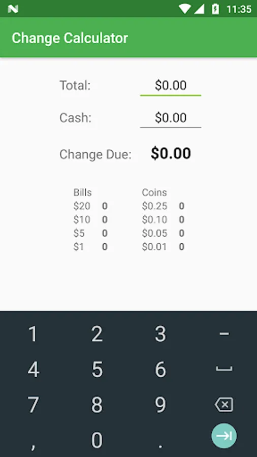 Paid version has check boxes for when you run out of bills or coins: https://play.google.com/store/apps/details?id=com.amandafarrell.www.changecalculatorpaid