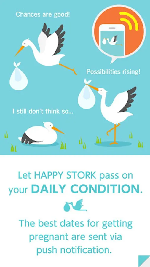 * Happy Storkg app pushes notifications to the couple on ovulation and fertile days