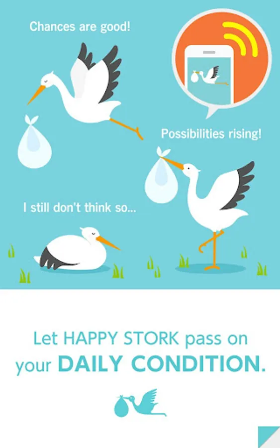 The charming Happy Storkg app discreetly informs couples of good timings for conception!