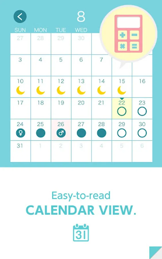 * Uses Ogino-method ovulation calculation to predict ovulation and fertile days automatically, based on input menstrual cycle information
