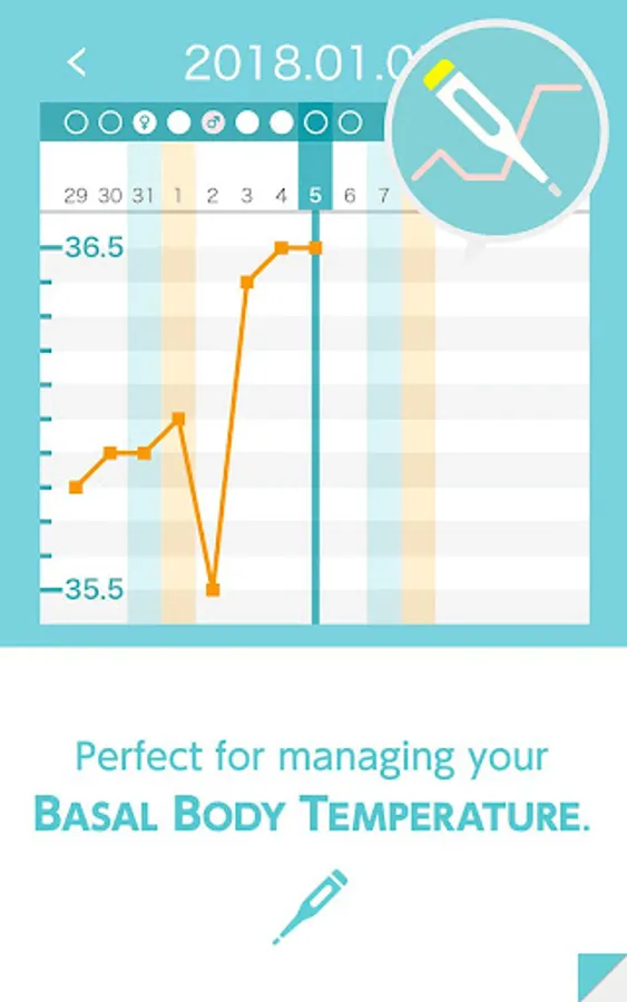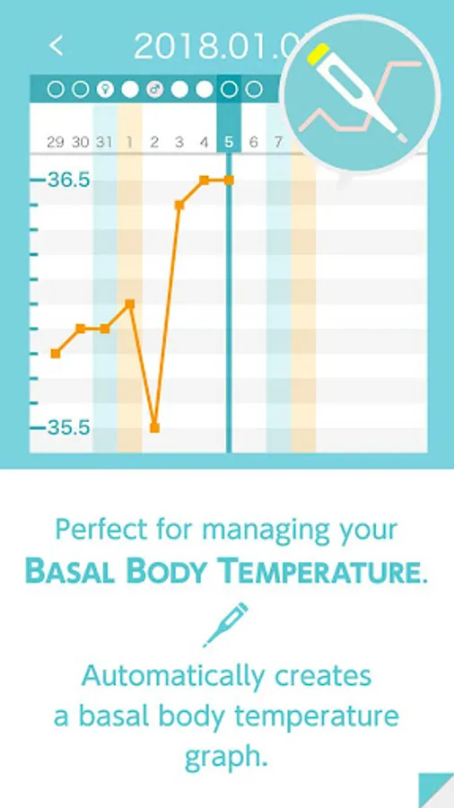 * Built-in basal body temperature (BBT) management functionality. Automatically generates a BBT graph based on input body temperature.