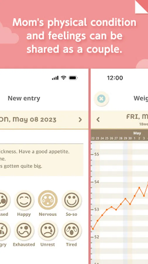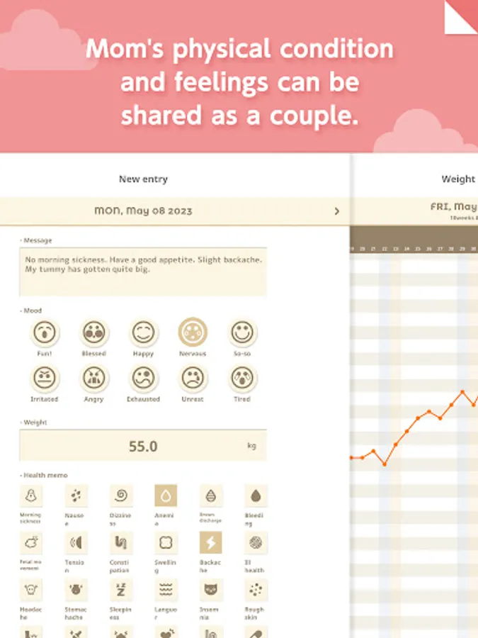 This app is fully equipped with functions to support you throughout your pregnancy, such as pregnancy countdown and weight management graphs!