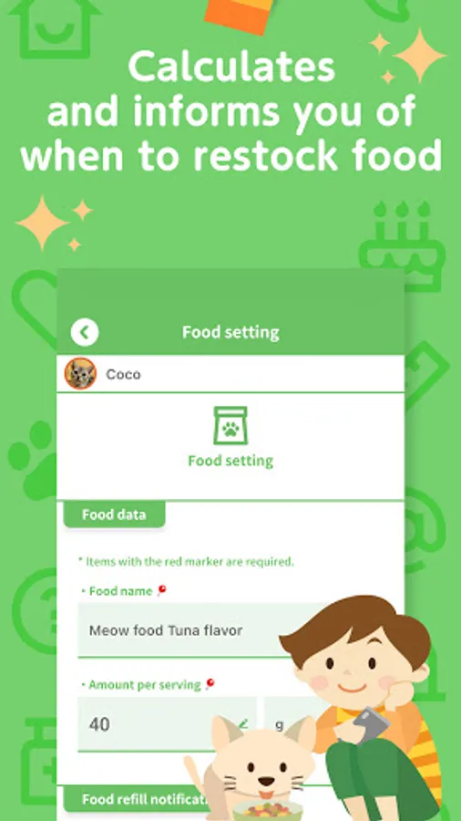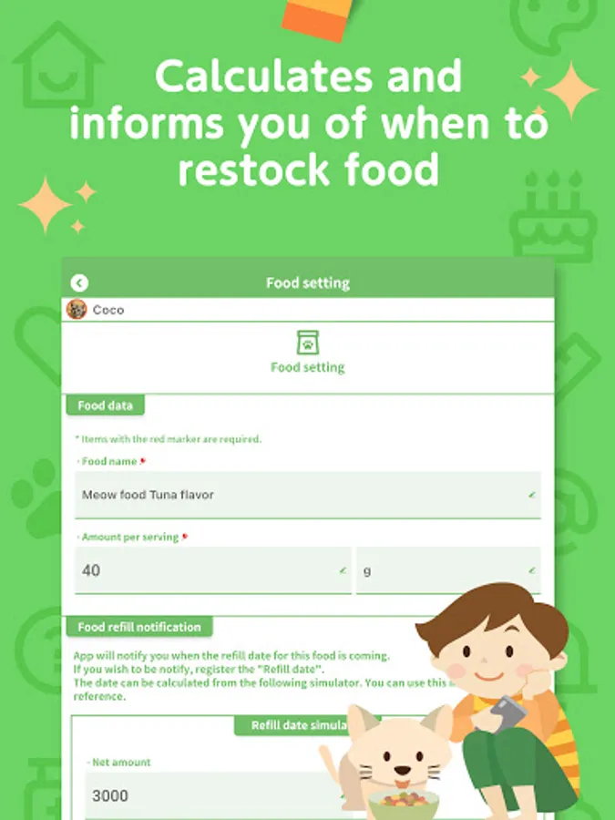 The app will also calculate when the pet food will likely run out and send you a notification.