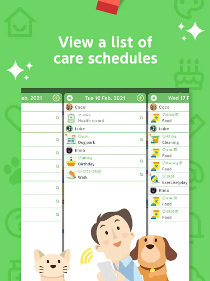 We have prepared a pet care menu for you, and you can also keep a record of pet care by recording anytime you finish a care schedule.
