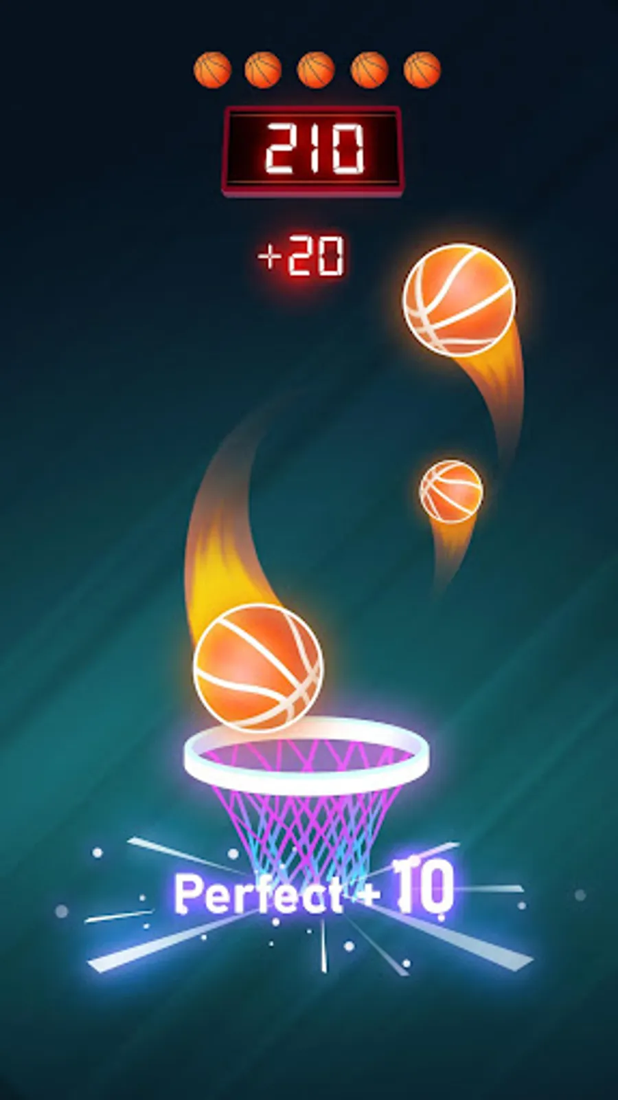 Featuring different stages of increasing difficulty to unlock new balls and popular songs. The key is not only to let your ball drop out of the basket zone but also play to the music. Listen to the beat and the melody, and afterward, you will find yourself into "zone".
