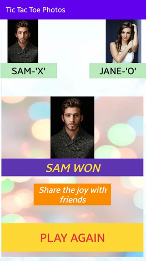 Moreover,the tic tac toe with photos gallery game is endless and you can play the game as many times as you want and the best part is that while playing the X O or tic tac toe game with photos,The winner gets an awesome animated applause which you can show off to your friends by using the share option.
