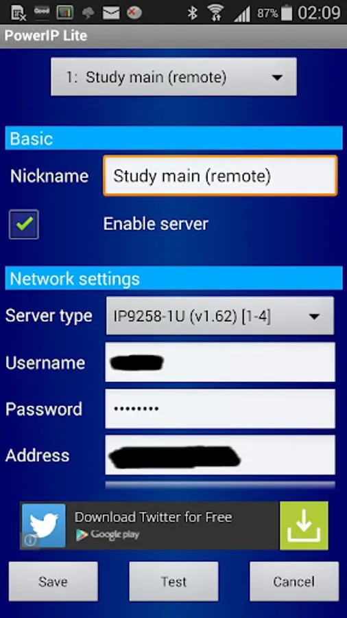 It's easy to set up. Just go into the server configuration menu and enter the user name, password, server address (an IP address or domain) and port for each of the power strips/switches. For the server address, you should not include "http", but instead just the address e.g. myserver.myhouse.com or 192.168.1.2.