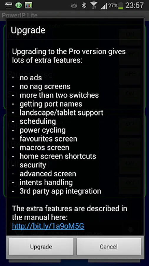 NOTE: to access the menus in PowerIP use your phone's menu button or press the three dots on the screen. See section 13.11 of the manual if you're not sure where to find it.