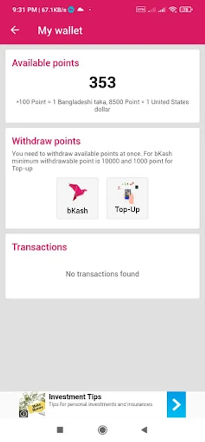 This app is develop for earning purpose only in BD. People can earn by watching ad in leisure time. Also there is reward , spin and daily bonus. Easy to withdraw money.