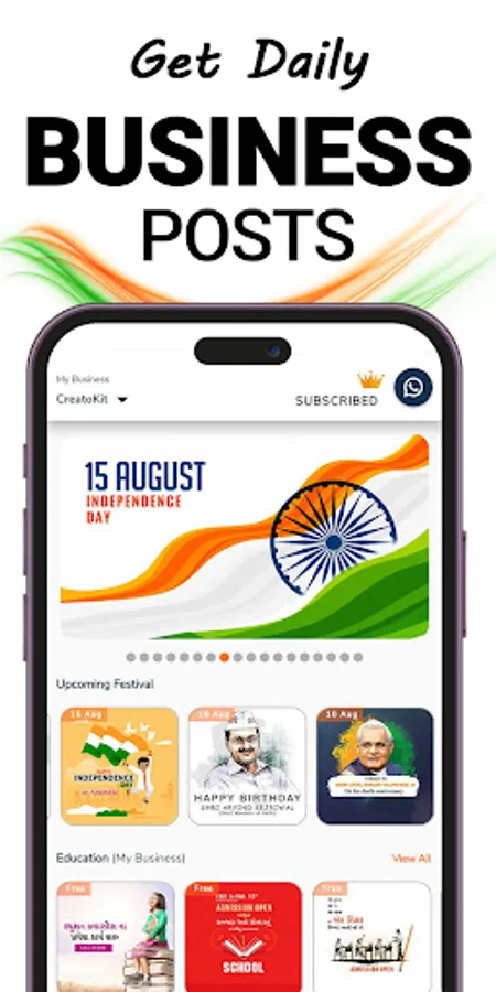 CreatoKit App helps small & large businesses for making AI based Festival Poster Graphics Design & Videos with all business details. Create Festival, Days, Trending Events, & Even Your Business Advertise Posters, Creatives, & Videos For Your Br& In Single Click. You able to share images & videos in all social media platform like WhatsApp status, Facebook post, Instagram posts & reel, pinterest, tiktok, YouTube