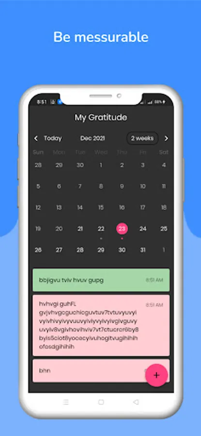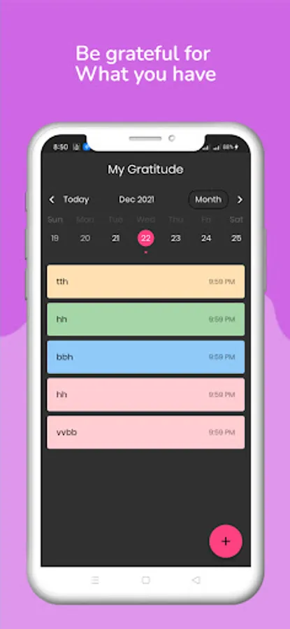 Gratitude app has timeline features in this you can check when you was grateful and which days are missed, with different colorful gratitude card