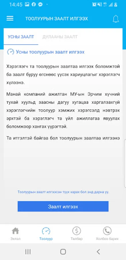 - Төлбөрийн и-баримтаа авах, уншуулах зэрэг үйлчилгээг авна.
