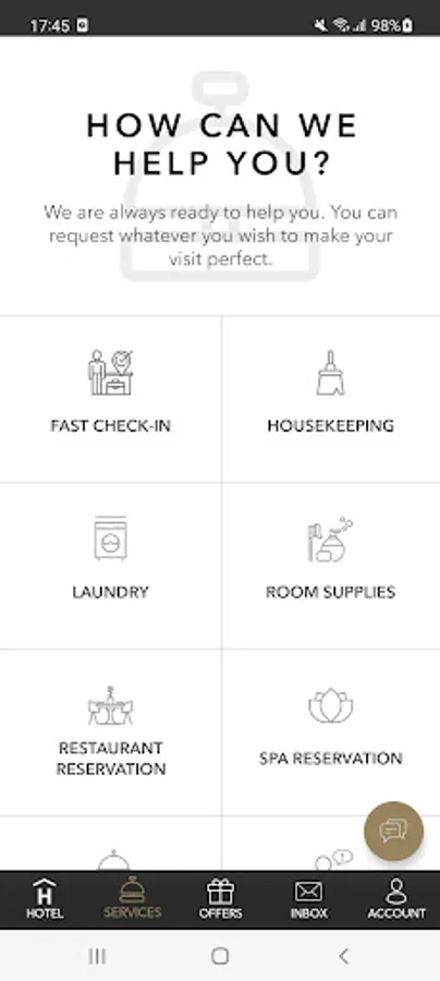During your stay, you can chat with our hotel staff regarding your guest service requests by the mobile application and send your requests and feedback to us directly. We will be working to provide the best service instantly by evaluating the surveys regarding your experiences which we will deliver by the application while you are using it.