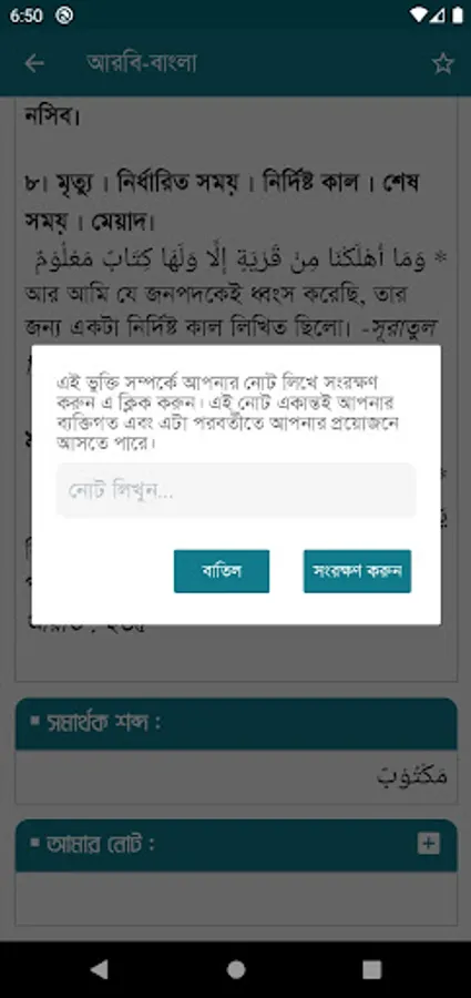 (৫) প্রতিটি শব্দের একাধিক অর্থ ও প্রয়োগ ছাড়াও থাকছে শব্দে শব্দে অর্থসহ কুরআনের আয়াত, হাদিসের মতন ও প্রসিদ্ধ কবি-সাহিত্যিকদের উক্তির সন্নিবেশ।