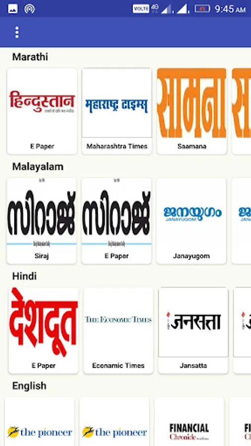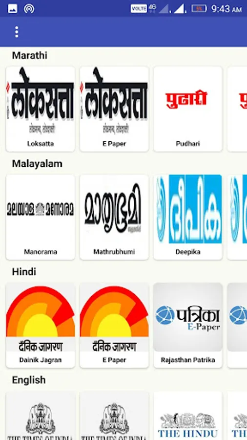 Hindi (हिन्दी) - Popular Hindi news Papers Dainik Jagran, Hari Bhoomi, Deshbandhu, Prabhat Khabar, Rajasthan Patrika and more.